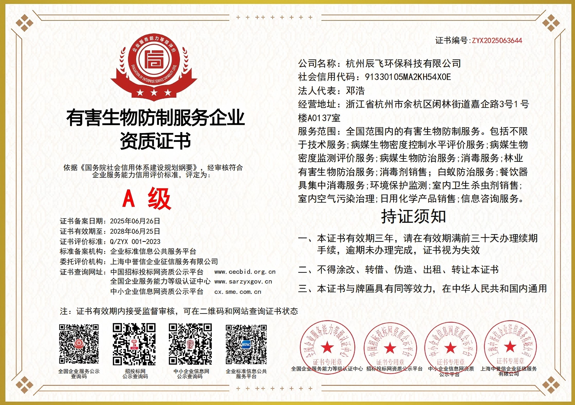 杭州辰飛環(huán)??萍加邢薰臼且患覍I(yè)的PCO有害生物防治服務(wù)機(jī)構(gòu)。是經(jīng)杭州市工商局注冊(cè)登記、杭州市白蟻防治管理所、PCO協(xié)會(huì)批準(zhǔn)的城市害蟲綜合治理消殺公司,是集除四害、白蟻消殺、除蟲、消毒殺菌、室內(nèi)空氣污染治理、藥械銷售于一體的大型專業(yè)杭州有害生物防治科技有限公司。主要從事新建、擴(kuò)建、改建、裝飾裝修單位建筑物的白蟻防治和白蟻預(yù)防工程,同時(shí)從事工廠、酒店、企事業(yè)單位、住宅小區(qū)和家庭的”四害”消殺和白蟻防治服務(wù),長(zhǎng)期向各類型客戶提供杭州白蟻消殺、除蟑螂、除老鼠、除蟲、消毒殺菌等優(yōu)質(zhì)服務(wù)。 本公司自成立以來,秉承“誠(chéng)信、敬業(yè)、高效、務(wù)實(shí)”的發(fā)展原則,以現(xiàn)...